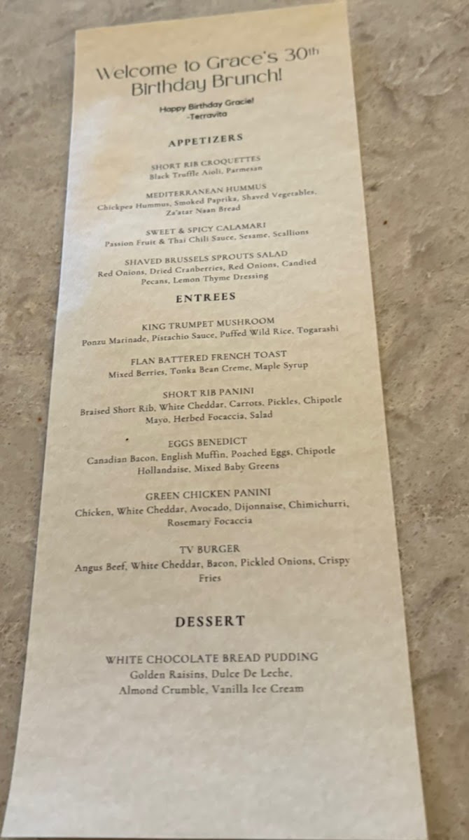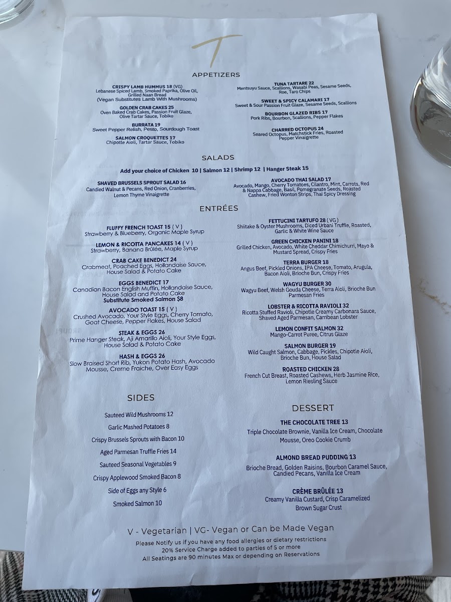 Brioche bread, golden raisins, bourbon caramel sauce, candied pecans, and vanilla ice cream.